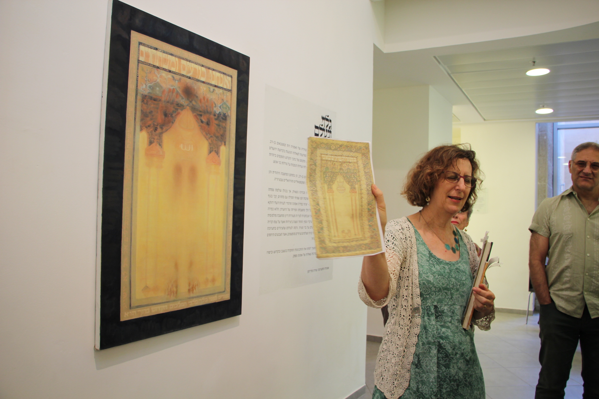 Art Exhibit: Dr. Shula Laderman, Senior Lecturer in  Jewish Studies and Art, together with artist Ruth Kestenbaum Ben-Dov explained the meaning of the paintings in an  exhibition at Schechter. The artist references the similarities between cultures, such as a prayer carpet and  Torah Ark parochet.