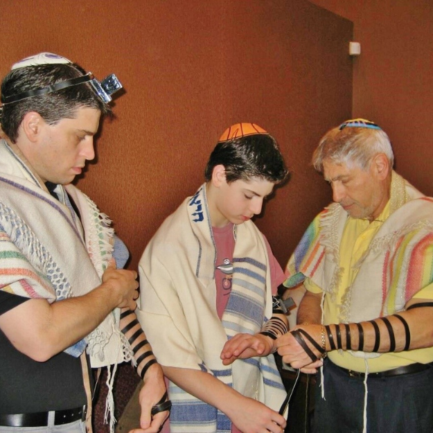 “Three generations tied the tzitzit on the tallit I wove for my grandson.  When completed, we all recited the Shehecheyanu. This was such an emotional experience. My heart was filled with love for my family and pride in what I was passing on to my grandson. My father, z’’l, was a very religious man and I couldn’t help thinking how proud he would have been.”