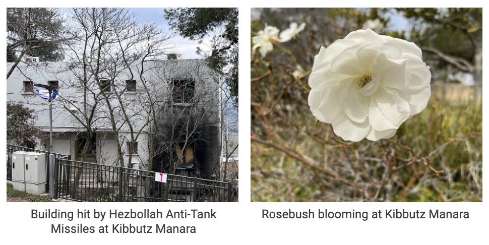 The attacks on Israel’s northern communities have left their mark as well. Hezbollah anti-tank missiles severely damaged Kibbutz Manara and it has been nearly abandoned for eighteen months; yet the desire to return remains strong. Despite the destruction, flowers are blooming—nature providing signs of the life that will soon return to these communities. Their determination to reclaim and restore their homes mirrors the unwavering spirit seen in the South; they, too, plan to rebuild, with the first families expected to return by this summer.