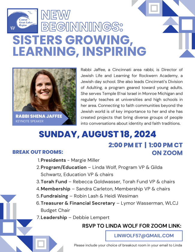 RSVP to Linda Wolf for Zoom Link: Linwolf57@gmail.com