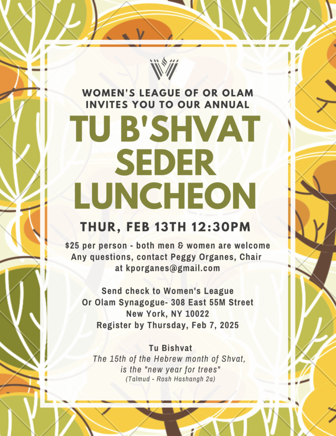 Metro North Sisterhood Event: Tu B’Shvat Seder Luncheon