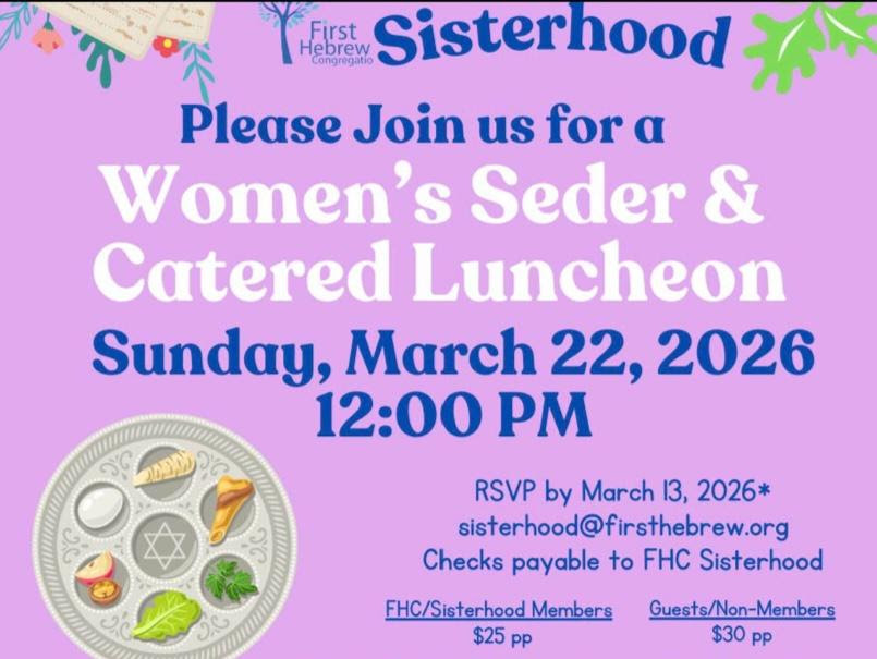 First Hebrew Sisterhood at sisterhood@firsthebrew.org