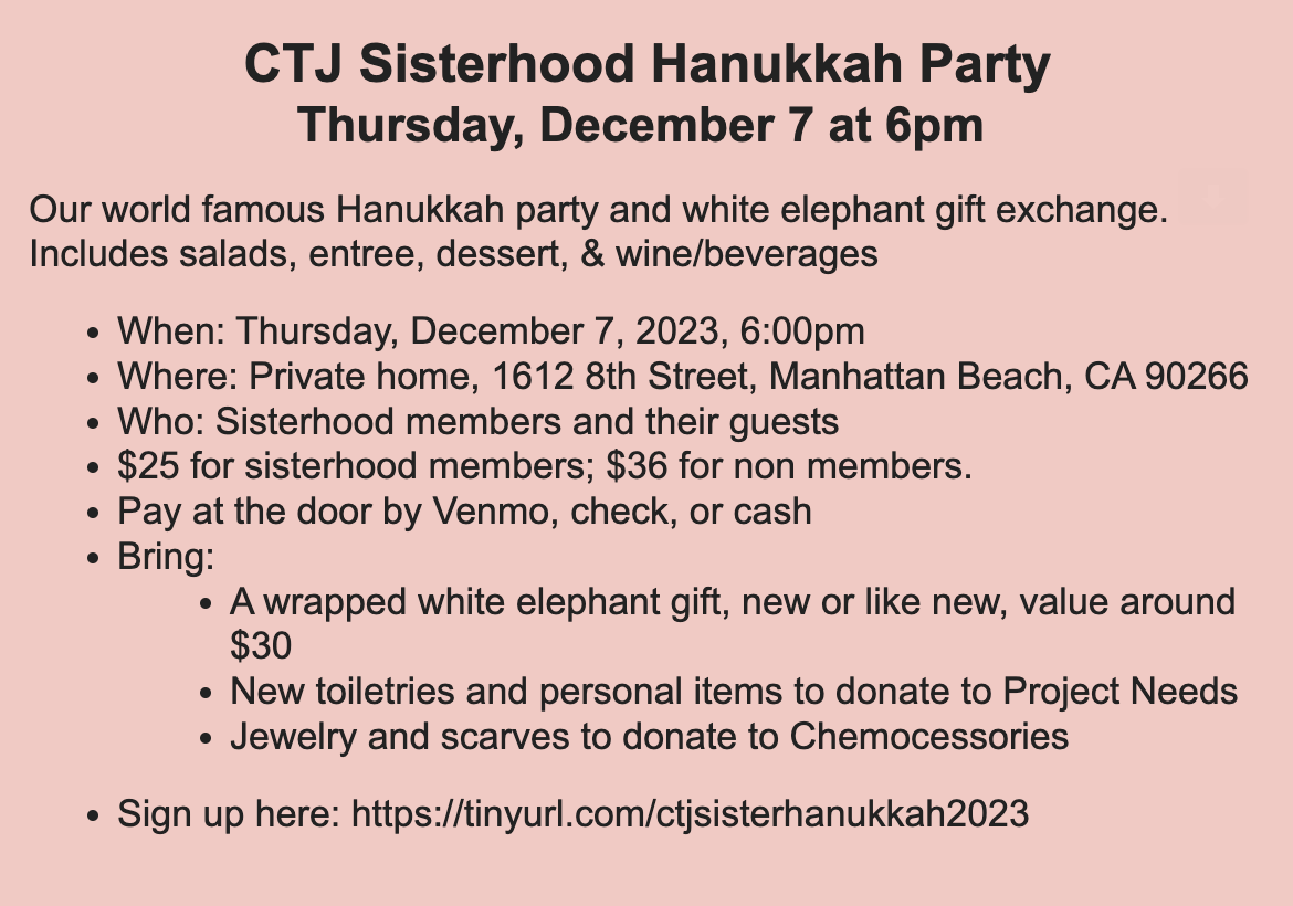 Registration link: https://tinyurl.com/ctjsisterhanukkah2023
