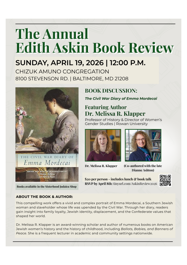 Seaboard Sisterhood Program: Annual Edith Askin Book Review featuring Dr. Melissa R. Klapper